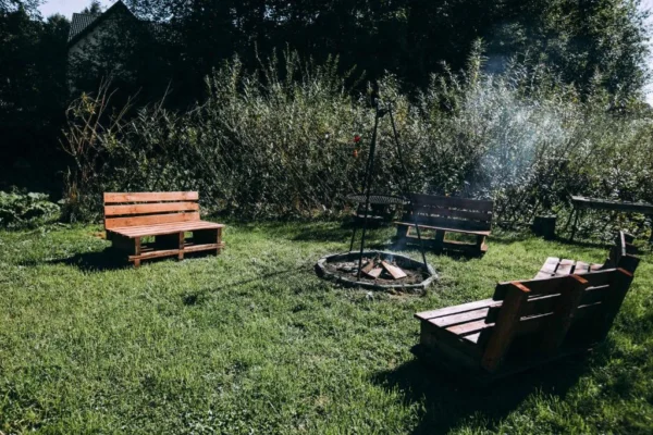 Ognisko i Grill: Specjalnie przygotowane miejsce na ognisko to idealna sceneria na klimatyczne wieczory pod gwiazdami i pieczenie kiełbasek.