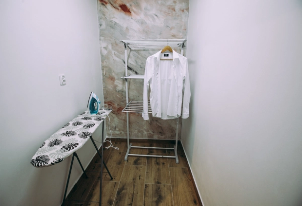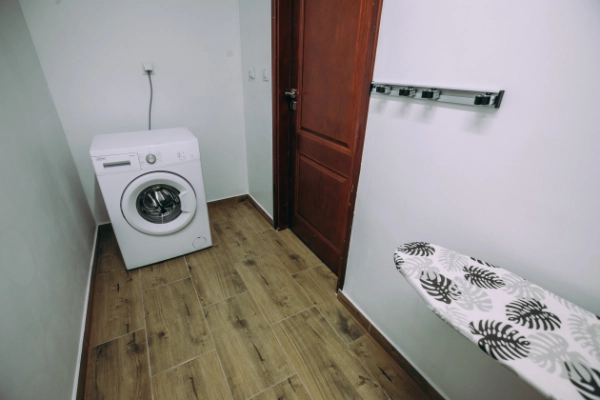 Pralnia/Pomieszczenie Gospodarcze: Wygodny dostęp do pralki i suszarki, a także żelazka i deski do prasowania – wszystko, co potrzebne, by odświeżyć garderobę w trakcie dłuższego pobytu.